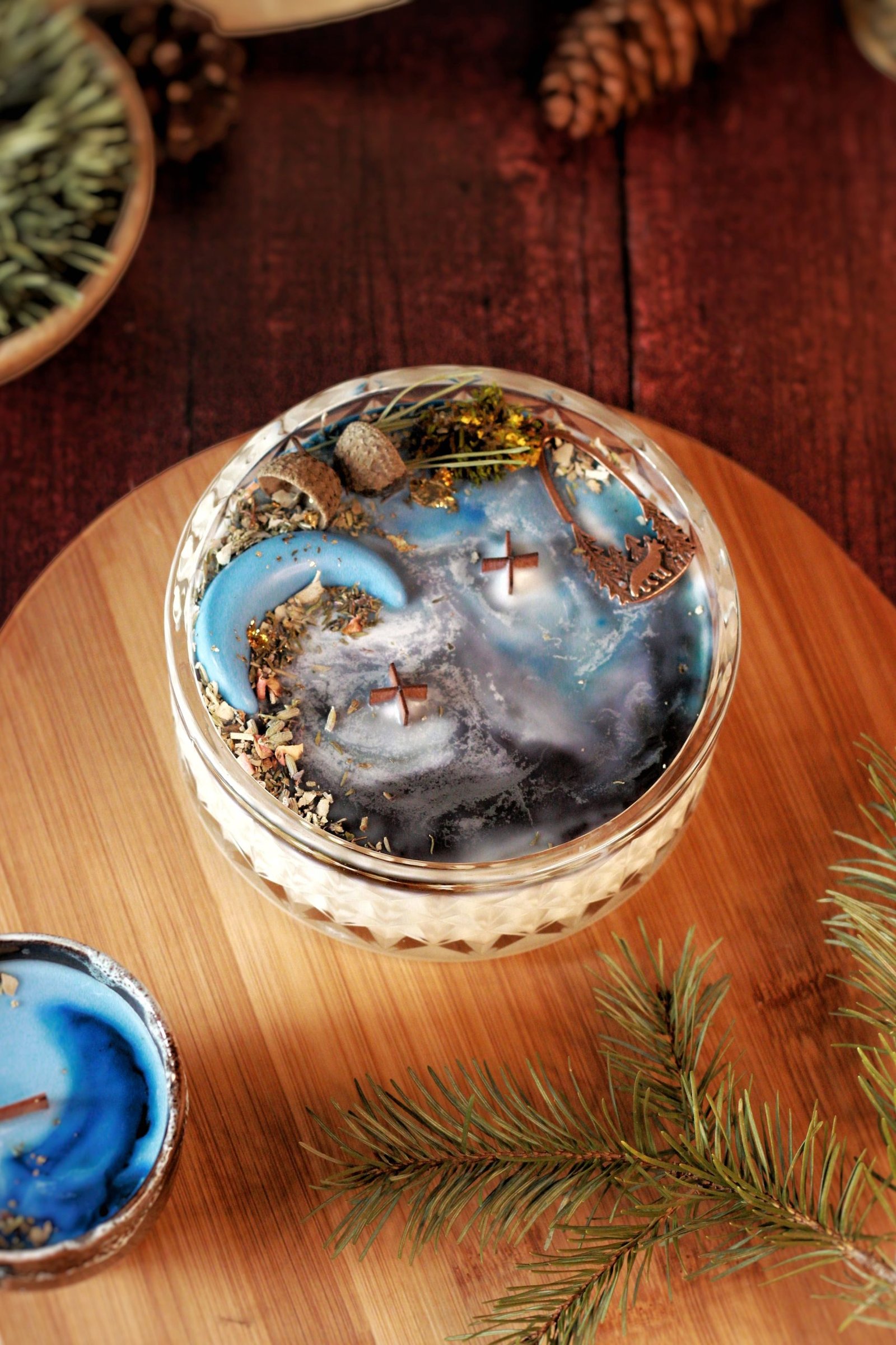Cette Bougie vous accompagnera, par sa flamme de bois de cerisier et son parfum enveloppant nuit du loup, dans vos rituels quotidiens.